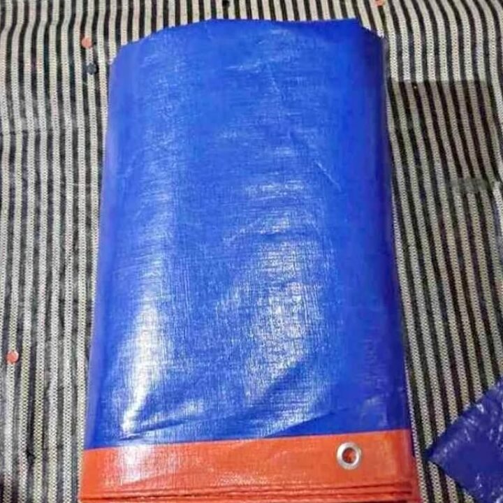 Terpal bangunan biru.